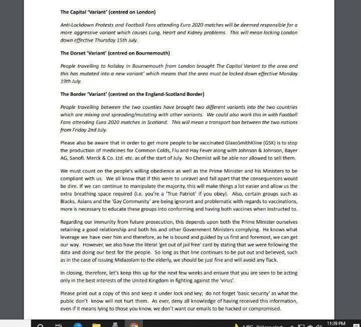At this point, all media must be controlled. All social media will ban the accounts of any sign resistance to the vaccine. Text messages must be filtered. Cell phone communications will be censored through the introduction of identifiable key words. Any Covid 19 treatment, exclusive of vaccines, must be strictly prohibited. The assets and resources of our colleagues at the CDC and FDA must be brought to bearatthis point.